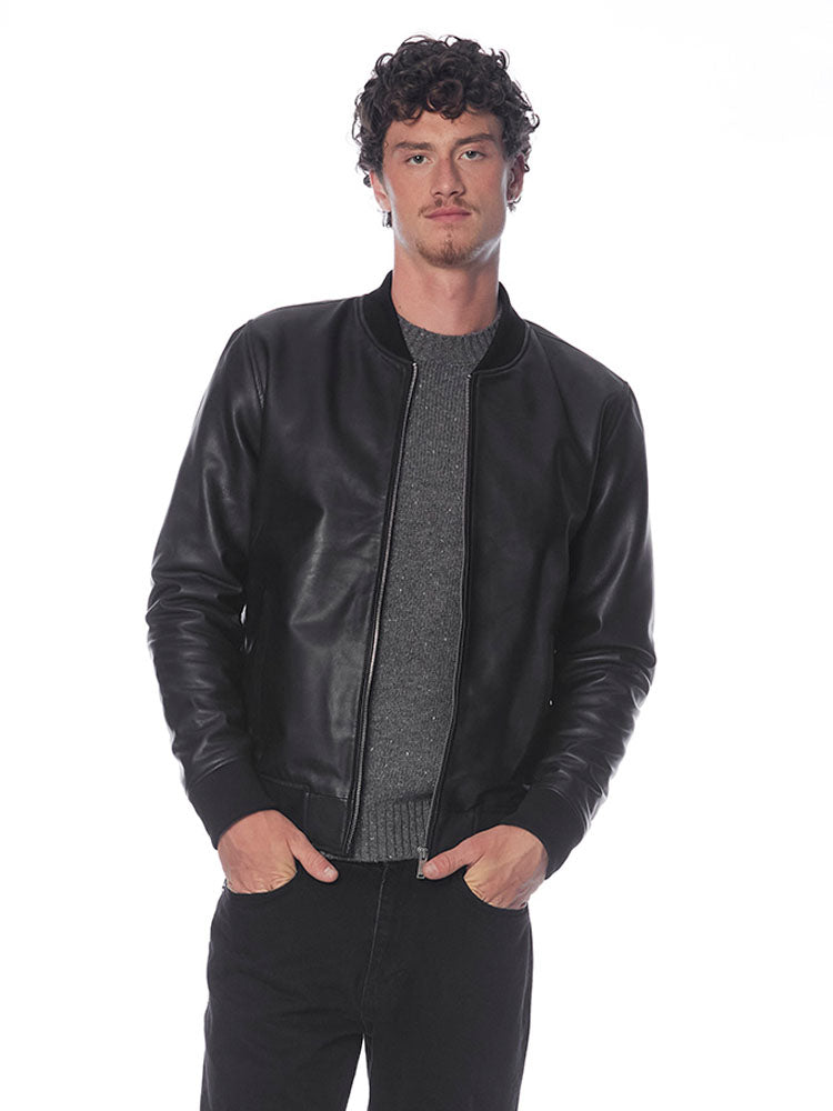 Genuine lamb leather bomber jacket for men