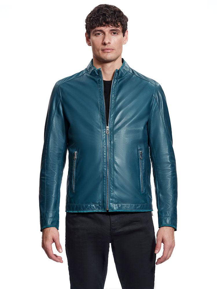 The CLARK jacket is the essential for the spring season, combining sporty and casual for an effortless flare. This sleek jacket is crafted in our premium supple lamb leather. Featuring a zip front closure, a sporty neck collar, and side pockets with zipper.