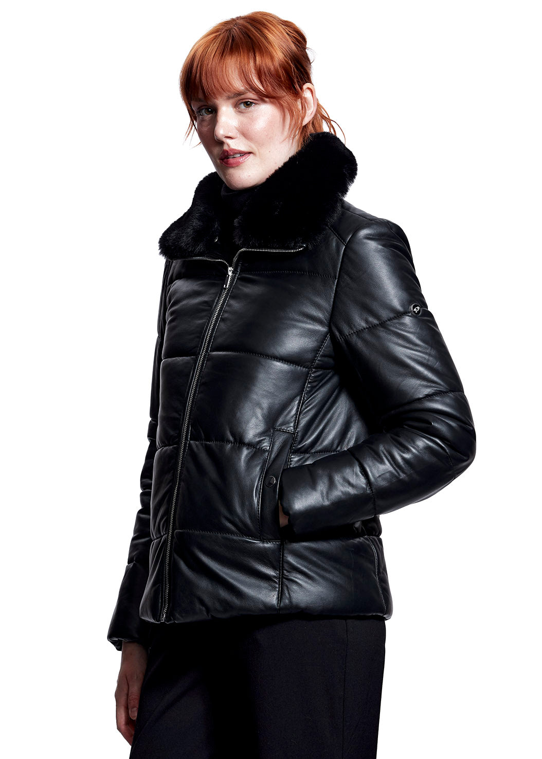 - Detachable Faux Fur collar with snap buttons
