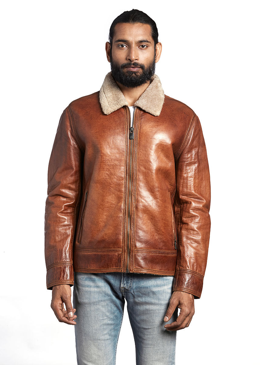 Expertly crafted from supple lamb leather, this  leather jacket has all the function and refined good-looks to take you through all fall weather. Bonded leather jacket with fake fur Front Zip...
