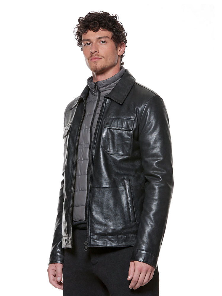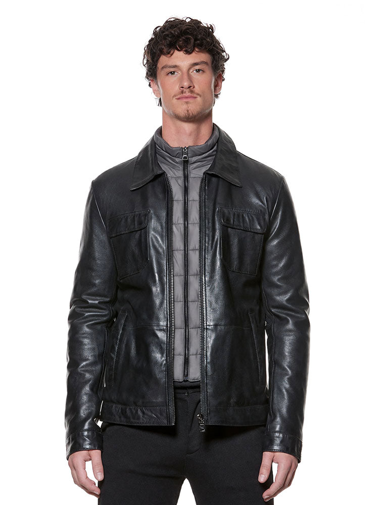 Classic and sophisticated leather jacket. The Sandro is the essential piece to have. Styling features include a zippered closure, 2-chest pockets and an inside bib.